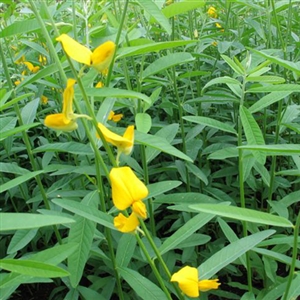 The two plants we use as cover crops are sesbania (left) and sunn hemp (right).